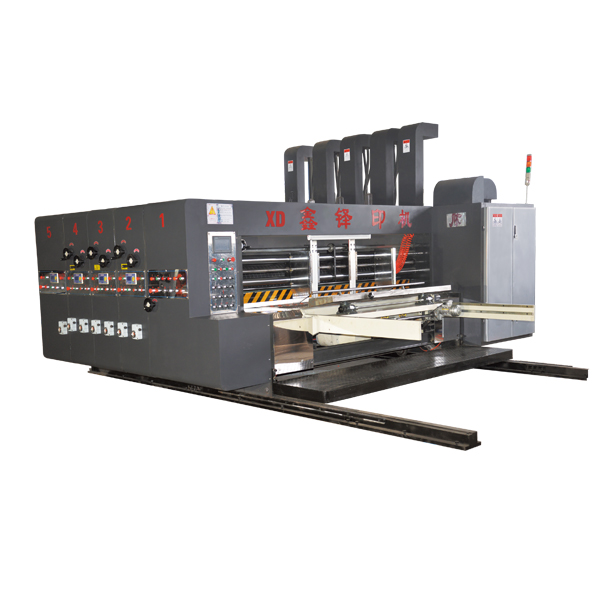 该产品能一次性完成纸板的多色印刷、分切、压线、修边、开槽、切角、模切、打孔等多道工序、采用前缘吸附式送纸,